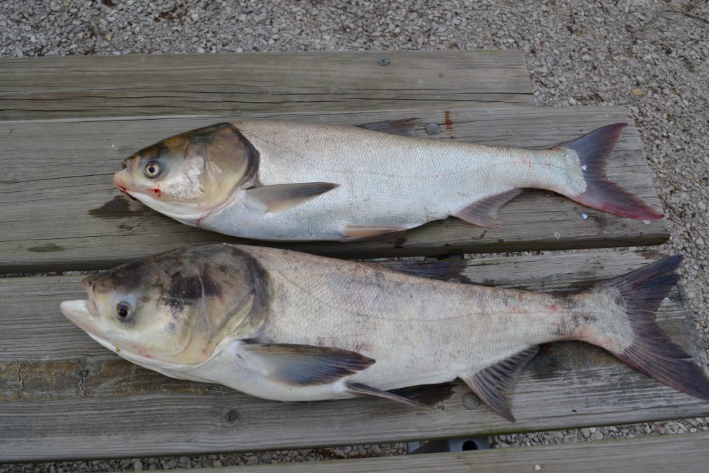 Both species are planktivorous, meaning they consume large quantities of plankton, however, Bighead Carp mainly consume zooplankton and Silver Carp mainly consume phytoplankton which means that they do not compete with one another. Because many of Canada’s native fish species rely on plankton as a food source during development, there is potential for significant competition between the invasive bigheaded carps and the native fishes. In addition, Bighead and Silver carps filter large amounts of plankton out of the water column to a greater degree than native fishes. This has the potential to cause a large decrease in native planktivores, such as Alewife (Alosa pseudoharengus), Bloater (Coregonus hoyi), Cisco (Coregonus artedi), and Rainbow Smelt (Osmerus mordax).